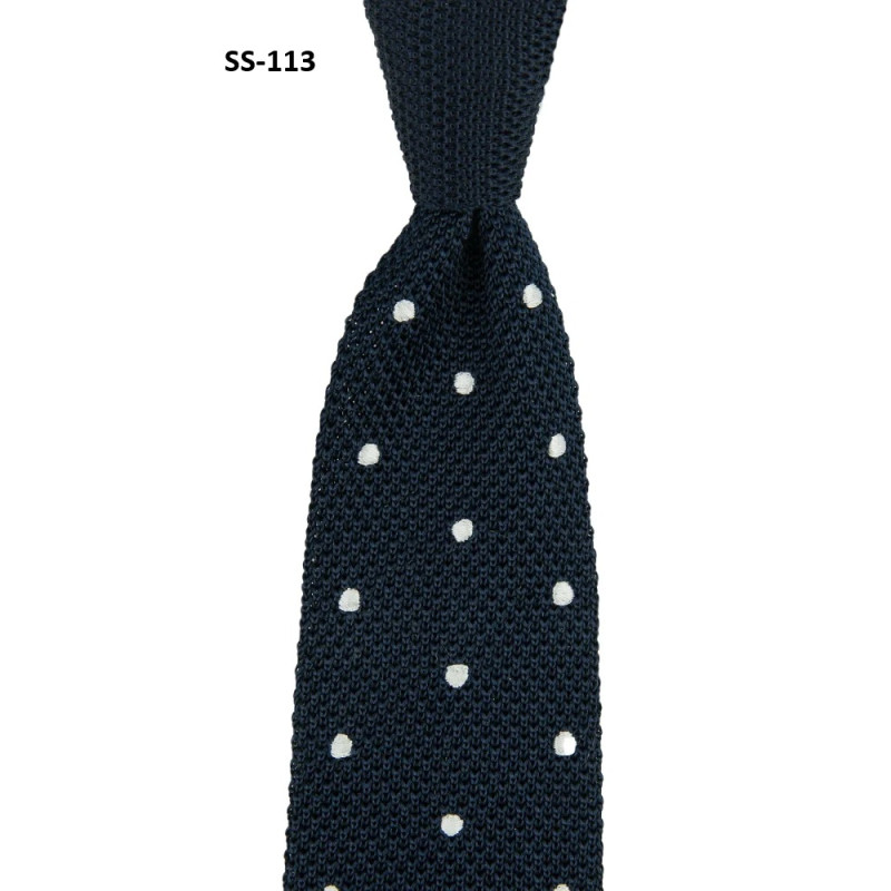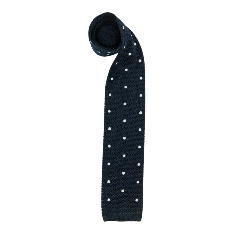 Blåt med hvide Prikker Strikket Slips