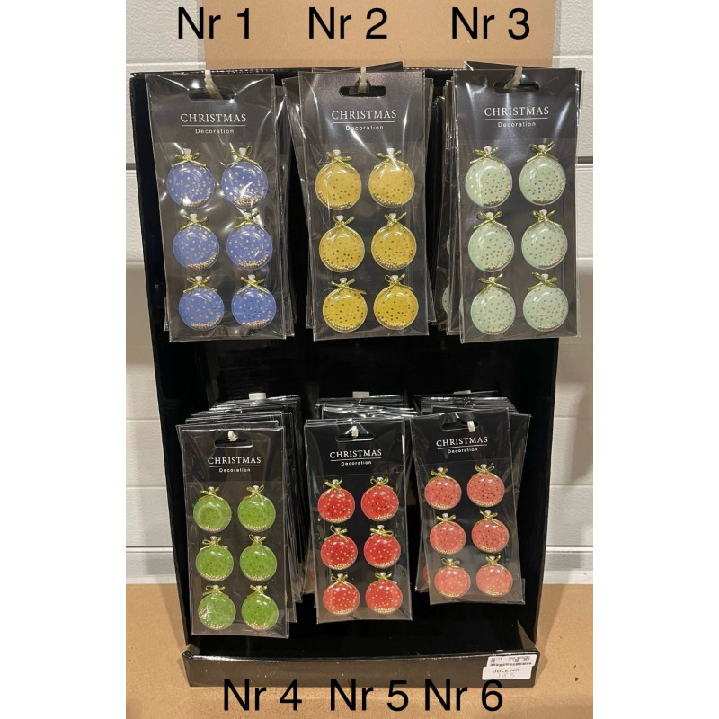 super søde Danse Jule Deco med kugler indeni i 6 farver med 6.stk på hvert ark
